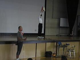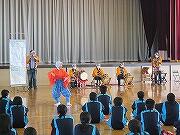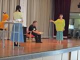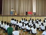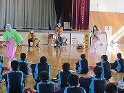 1年生が総合的な学習で「いわふね調べ」をしています。今回はその最終回で「クリフステージ」「ミュージカル」「落語・漫談」の方々に来ていただいてお話を聞かせていただきました。