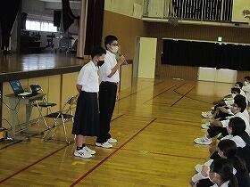 今日の集会は福祉委員会からでした。現在行っている福祉委員会の活動の紹介と、先日行ったボランティア活動について、参加者の感想などを交えて話がありました。ボランティア活動は最初の一歩さえ踏み出してしまえば、参加しやすくなってくるものだと思います。あまり構えないで気軽に参加してください。