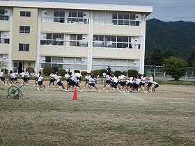 次は1年生の「台風の目」です。3クラスほとんど差がなく僅差の勝負でした。