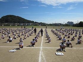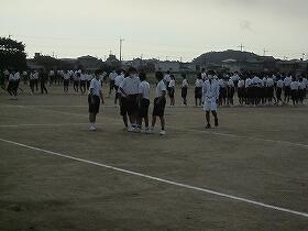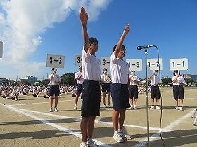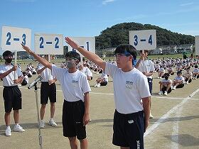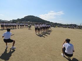 10月1日(土)の体育祭に向けて全体の練習が始まりました。体育の授業では始まっていましたが、全校生徒が集まっての練習は初めてです。岩舟中は恵まれているので、開会式・閉会式の練習を全体でやった後は、各学年ごとにそれぞれが200mのトラックを作って練習が同時展開できます。待ち時間などのロスが少なく、練習を思い切ってできます。