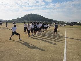 今週土曜日に迫ってきた体育祭に向けてクラスごとの朝練が始まりました。クラスごとに練習の内容を決めて担任の先生と一緒に取り組んでいました。どのクラスが勝つのか、まだまだわかりません。