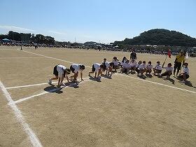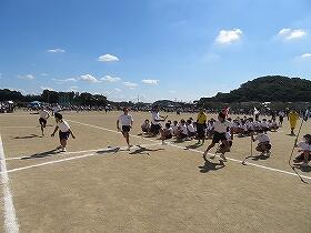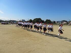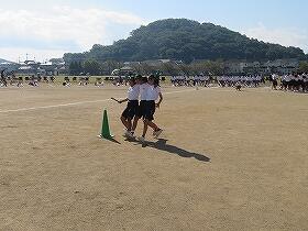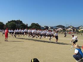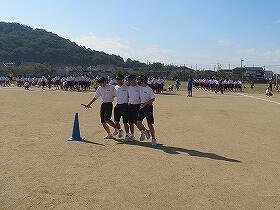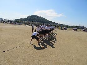 競技が始まり、最初は2年生の「人脚」です。練習の成果が出たようで転んでしまう姿はほとんど見られませんでした。