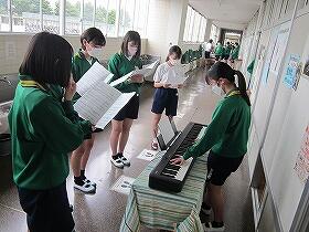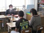 2年生は来週の小中交流活動に向けて授業の準備をしています。自分の出身小学校に赴いて、各学年ごとに様々な活動を行います。その準備と打ち合わせでした。