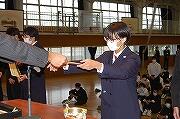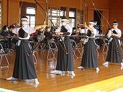 弓道部女子は26日、団体戦に2チームと個人戦に3人が出場し、1次予選を24射13中で抜けたAチームが2次予選で12射5中、予選合計36射18中で決勝トーナメントに進みました。1回戦一条中戦は12射5中で並んで競射(1-0)で勝ち、準決勝大平中戦は7-6で勝って、決勝北犬飼中戦は7中で並んで競射(0-1)で惜しくも敗れ準優勝でした。個人戦でも4位と7位に入賞しました。団体で準優勝しましたので来月15日(月)に東京武道館で行われる関東大会に出場します。