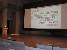 第2部では夏休みの生活・学習についての説明がありました。部活動があり、宿題も教科ごとに出され、小学校のときとは違った夏休みの過ごし方になると思います。