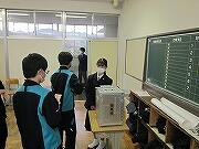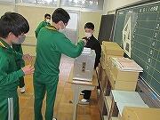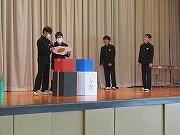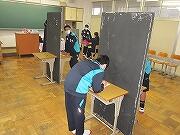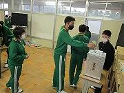 来年度の生徒会役員を決める立会演説会と選挙が行われました。体育館で実施する予定でしたが、コロナの状況と12月に入り一気に寒くなったことからリモートでの実施にしました。今週、応援責任者による演説を給食の時間に放送で行い、今日は立候補者本人が自分の言葉で抱負を述べてくれました。投票は各学年の空き教室を使って行い、投票終了後すぐに選挙管理委員による開票作業に移りました。