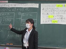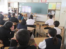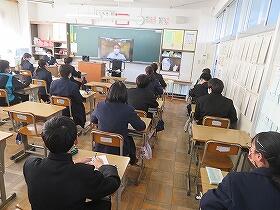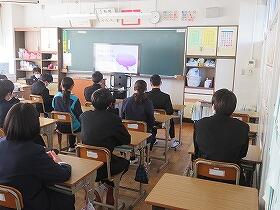 1年生が「喫煙防止教室」をリモートで行いました。まずは講師の先生に事前に作っていただいた映像などの資料を各教室で観て、その後、直接講師の先生とつないで、その場で講師の方に質問にお答えいただきました。真剣に映像を見て「たばこ」の害について理解できたようでした。今回初めての試みで講師の先生に来ていただくことなく健康教室を実施しました。これからは、お忙しい講師の先生にわざわざ来ていただかなくても、講話をお聞きすることができることがわかりました。