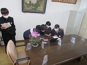 今年度2回目の学校運営協議会を開催しました。学校の様子等の説明をさせていただいた後、授業の様子を参観していただきました。生徒が積極的に授業に参加している様子と、寒いですが窓を開けて換気をしている様子、タブレットや大型ディスプレイを使って授業を行っているところを見ていただきました。その後、学校への質問や要望、そしてアドバイスを多数いただきました。委員の方々にはお忙しい中をお越しいただいて貴重なご意見をいただき感謝申し上げます。