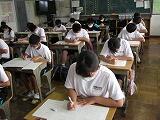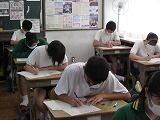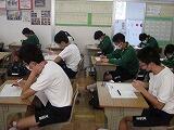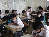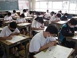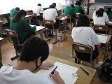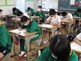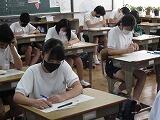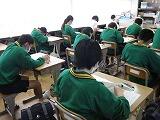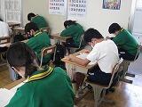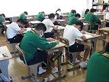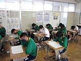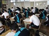 本日は3教科のテストを行いました。1年生は英語・社会・国語、2年生は国語・英語・社会、3年生は数学・理科・英語の順でテストを受けました。どのクラスも解答用紙に記入する音しか聴こえません。特に3年生は休み時間を有効に使って、最後の確認を行っていました。明日は残りの2教科のテストを行います。