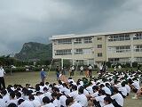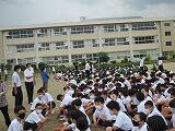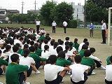 5校時終了時に緊急放送により避難訓練を伝えて、教科担任の指示で避難を開始しました。最も遠い北舎の3階から避難した1年生が、校庭に整列するまでにかかった時間は3分50秒でした。かなり短い時間で全員が避難することができました。今年度はじめての避難訓練でしたが、どの学年の生徒も整然と避難することができました。