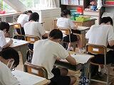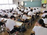 期末テストは3日間で9教科のテストを行います。テスト前から各学年の廊下には、自主学習の良い例として生徒のノートのコピーが張ってあったり、テスト範囲のプリント等が自由に持っていけるようなっていたり、勉強する雰囲気づくりに取り組んできました。生徒はそれぞれにテストの準備を進めてきました。テストは明日まで続きますが、努力した結果が発揮できるように頑張ってほしいと思います。
