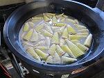 朝1番で皮をむき、ぬかをいれた鍋でやわらかくなるまで煮ました。