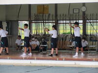 体育祭副実行委員長の進行で始まり、実行委員長から体育祭向けての想いが語られました。「自分たちの手で作り上げる」「自分たちで盛り上げる」という想いは全校生徒に伝わったと思います。3年生にとって、中学校最後の運動会です。怪我無く、完全燃焼で終わってほしいと願っています。