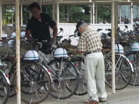 秋の全国交通安全運動期間に合わせて、岩舟自転車組合の皆様が生徒の通学用自転車を点検してくださいました。8時30分から約3時間、丁寧に作業をしてくださいました。