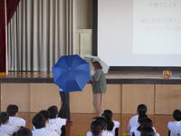 「江戸しぐさ」を基に「いわふねしぐさ」を考案し、いわふねしぐさを広め、定着させることによって子育てしやすい街づくりをしていることを教えていただきました。「傘かしげ」を実演していただくなど分かりやすくお話していただき、ありがとうございました。