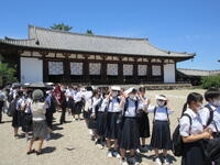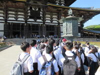 1日目最後の見学場所は奈良公園。鹿を楽しみにしている生徒。大仏の大きさに関心を持つ生徒など様々に楽しんでいました。