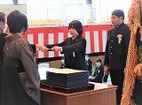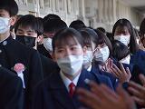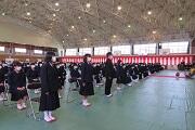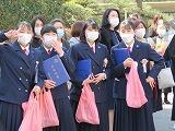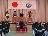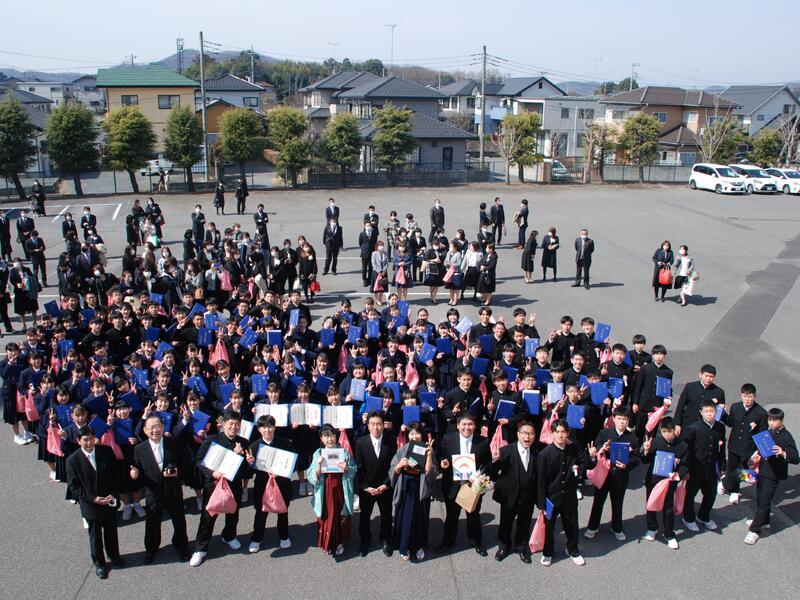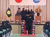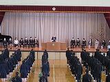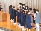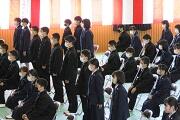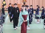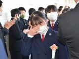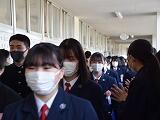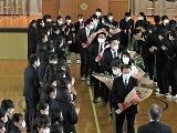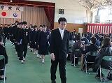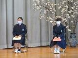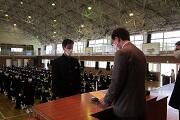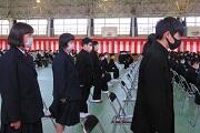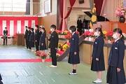 今年度もコロナウイルス感染症対応のため、来賓は学校運営協議会会長 瀬下様とPTA会長 中新井様の2名で、体育館には卒業生と保護者、教職員、生徒会本部役員が参加し、在校生は校舎内で見送りをする形にしました。生徒会本部役員の進行で式が進み、厳粛な雰囲気の中で生徒一人一人がしっかりと卒業証書を受け取りました。在校生代表の送辞や卒業生代表の答辞も感動的な内容で、大粒の涙をこぼしている生徒もいました。感染症対策のために内容を変更し、式は短くなりましたが、卒業生の思い出に残る温かい卒業式になりました。