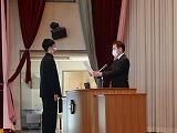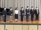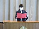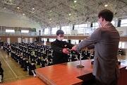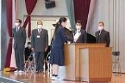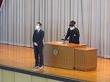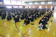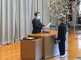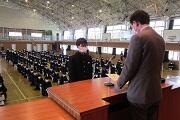 式の始めに、1・2年生の代表生徒に修了証を授与しました。校長講話では、各自で1年間の総括をして来年度への進級の準備をすること、引き続き基本的な感染症対策を徹底することについて話をしました。その後、各学年の代表の生徒が3学期の反省と今後の抱負を発表しました。修了式後には、1年間皆勤の生徒を表彰しました。1年生は52名、2年生は57名の生徒が1年間の皆勤で表彰されました。それ以外で今までできなかった表彰も行いました。たいへん落ち着いた雰囲気で、1・2年生の1年間の成長を実感しました。