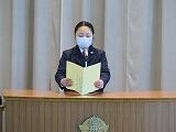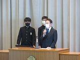 入学式は新入生と保護者の方のみの参列で、2、3年生は教室でリモート参加でした。新入生のしっかりした態度で、引き締まった式になりました。代表の生徒も「誓いの言葉」を堂々と発表してくれました。その後生徒会役員だけの参加で対面式が行われました。生徒会長からの「歓迎の言葉」と新入生代表の「お願いの言葉」の発表がありました。