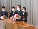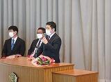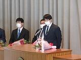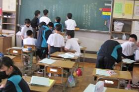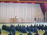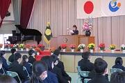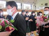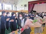 今年度は15名の先生方が転退職されることになりました。生徒代表の送別の言葉の後、生徒会役員が転退職される先生方に花束を贈呈し、先生方からはお別れの挨拶をいただきました。転退職される先生方には、今まで岩舟中学校のためにたいへんお世話になりました。新しい場所でもご活躍されますことをご祈念いたします。