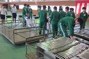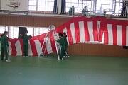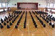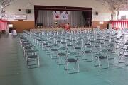 明日行われる入学式の準備を新3年生が行ってくれました。明日の入学式は感染症対策のため入口に消毒と体温測定をしていただいて実施します。新3年生、新2年生は教室でリモートでの参加になります。