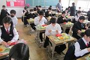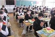 やっと配膳が終わって食べ始めましたが、今年度のスタートも前向きの黙食でした。