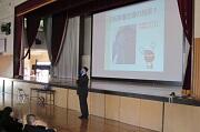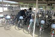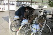 輪業組合の方に来ていただいて、全校生徒の自転車点検をしていただきました。安全に登下校するためにブレーキやライト等を見ていただいて、合格した自転車にはシールを、不備のあった自転車にはその個所を記した札をつけていただきました。1年間無事故で過ごせることを願っています。