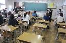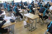 3年生は全国学力・学習状況調査で国語、数学、理科のテスト、2年生はとちぎっ子学習状況調査で国語、社会、数学、理科、英語のテスト、1年生も国語、社会、数学(算数)、理科、英語のテストです。1年生は中学校に入学して初めてのテストですので、緊張感が伝わってきました。