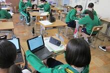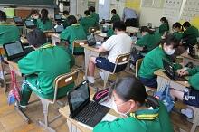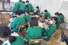 3年生は旅行雑誌やタブレットを使って修学旅行(京都・奈良)について調べていました。今年は京都・奈良に行かせてあげたいですね。