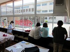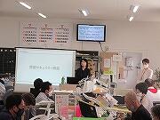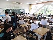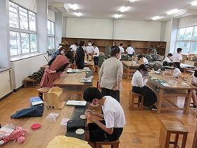 今日は2年生の家庭科の授業に5名のボランティアの方に来ていただきました。エコバッグ制作の前の段階としての練習だったようです。一人ひとりていねいに教えていただいていたので、実際のバッグ制作が楽しみです。