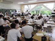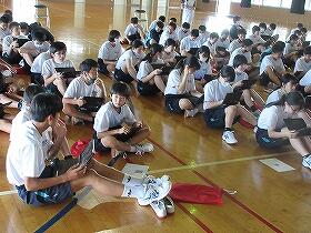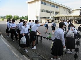 70日間の1学期が終了しました。各学年の代表の生徒が1学期の反省と、これからの夏休み、2学期に向けての抱負・心構えを発表してくれました。最後に生徒会から今まで集めてきたアルミ缶の収益金で車いすを寄付することが発表されました。併せてペットボトルキャップの回収を2学期から始めたいので協力してほしいとお願いがあり、拍手で承認をしてもらって、回収活動を進めることが決まりました。