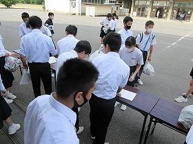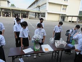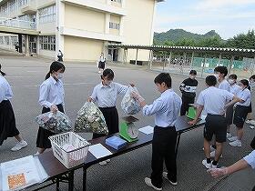 今年度2回目のアルミ缶回収を行いました。昨日の集会で、今までのアルミ缶の収益から、車いすを今学期中に福祉施設に寄贈することが報告され、思いが形になるうれしさを全校生徒が感じられたと思います。このことと夏休みを挟んだこともあり、今回も多くのアルミ缶が集まりました。