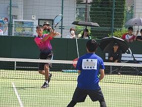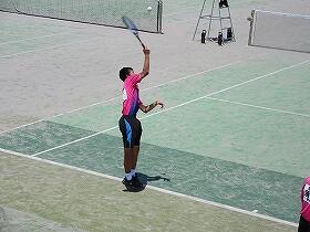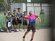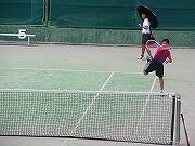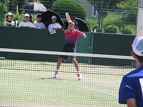 男子ソフトテニスの県大会がくろいそのテニスコートで行われました。1ゲームを先取されて2ゲーム目を取り返し、3、4ゲームを取られて5,6ゲームを取り返し、という粘り強い戦いぶりでファイナルに突入しました。残念ながら最後に力尽きて負けてしまいましたが、ゲームカウント1-3の崖っぷちから追いついた2人に感動しました。