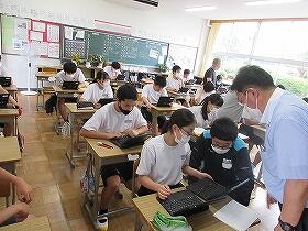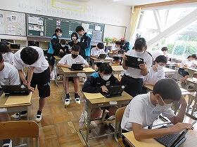 3年生の総合的な学習は修学旅行のまとめをやっているようでした。まずは写真を取り込んでという作業のようです。タブレットを使っての作業でした。どんなものが出来上がるのでしょう。楽しみです。