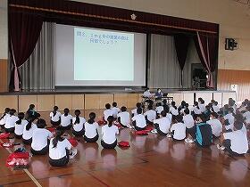体育の研究授業を行いました。教員の指示でテキパキ動いてバレーボールに取り組んでいる姿に、お褒めの言葉をいただきました。今日はラリーが何回続くかを記録し、途中で改善点を話合って2回目に臨む授業でした。話合いも意見がたくさん出て真剣に取り組んでいる様子が窺えました。