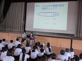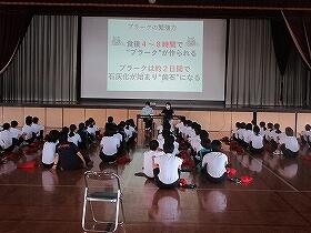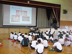 2年生が市役所健康増進課の方に来ていただいて歯と口の出前講座を行いました。内容は「むし歯」予防のための講話と顎模型を利用したブラッシング指導です。タブレットを使って自分の歯の写真も撮ってみました。