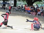 実は岩舟中ソフトボール部は3年生4人、2年生1人、1年生3人の合計8人で、このままでは大会に出場することができませんでした。そこで何とか手伝ってもらえないかと他の部の生徒6人に声をかけたところ、6人全員が2日間ともソフトボール部の友達のために来てくれました。体育でしたやったことしかないソフトボールという競技の試合に、炎天下の2日間来てくれた6人に感謝の言葉しかありません。