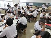 今日はボランティアの方3名に来ていただいて、先日とは別のクラスの家庭科をお手伝いいただきました。「まつり縫い」の練習で、最後の「玉止め」のところは、ボランティアの方に質問して直接教えていただいている姿が見られました。