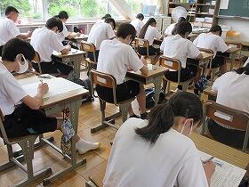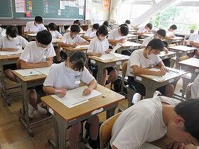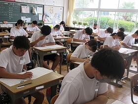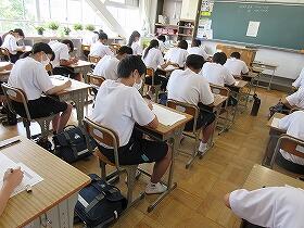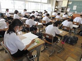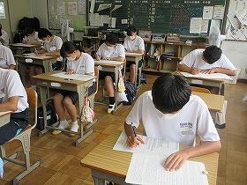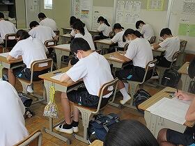 2学期早々ですが、全学年で実力テストを行いました。夏休み中の勉強の成果が問われます。3年生は受験に向けてこれから本格的にスタートすることになります。真剣さが伝わってきました。