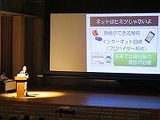 一昨日コスモスホールで第2学年のPTA研修会を行いました。多くの保護者の方にご出席いただいて充実した研修会になったことと思います。内容は、まず、「ネットトラブル講座」として栃木市消費生活センターの方にお話しいただきました。パワーポイントを使っての説明に加え、多くの資料もあり理解しやすかったと思います。そして1学期の学習と生活についての報告の後、職場体験学習の報告会がありました。全ての発表はできませんので、5つの事業所での体験の様子と感想などが発表されました。