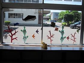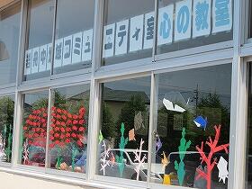 いつものように「つるの会」の方々が地域コミュニティ室の模様替えをしてくださいました。今回は秋の装いということで、ドングリを折った色紙を組み合わせてリースの形になっています。そして黄色の色紙でイチョウの葉を、グラデーションになった色紙を使って紅葉していく葉を添えました。