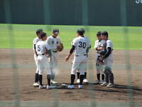 5月3日、爽やかな青空の下、栃木県総合運動公園エイジェックスタジアム(本球場)で、野球大会が行われました。1回戦、前年度覇者の作新学院中等部と対戦しました。初回に4点を先制され、3回にも追加点を奪われる苦しい立ち上がりとなりました。回を追うごとに岩舟中も冷静さを取り戻し、反撃が期待されましたが、相手投手の巧みなピッチングに翻弄されてしまいました。最終回に1点を返すも、敗れてしましました。本球場で試合ができたことは貴重な経験となりました。地区大会の糧にしてほしいと思います。