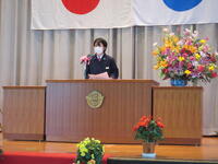 2年生と3年生が登校し、異動してきた職員を紹介する新任式を行いました。代表生徒による歓迎の言葉で始まり、職員が一人一人挨拶をしました。異動してきた職員は、生徒の立派な参加態度に驚いていました。