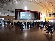 先週の金曜日、PTAの研修委員会主催の「体の歪みを治す運動」と題した研修が岩舟体育館で行われました。