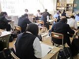 ボランティアの皆様には、全学年の習字の指導をお願いしました。1・2年生は生徒がそれぞれ今年の言葉を自分で決めて書きました。3年生は論語の中の言葉から、自分で選んだ語句を書きました。ボランティアの方には、筆の使い方の指導や添削の他、希望する生徒には手本を書いていただきました。生徒は集中して習字に取り組んでいました。