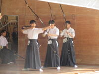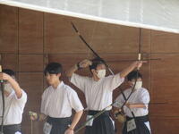 弓道の支部大会が20日に大平中学校で行われました。全員が4射し、2中以上が二次予選に進出して、合計8射の合計的中で順位を争いました。男子が団体準優勝と個人準優勝を獲得しました。