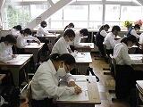 1年生は国語・社会・数学、2年生は理科・英語・国語、3年生は社会・数学・理科の順にテストを行いました。どの学年の生徒も集中してテストを受けていました。明日は残りの2教科のテストを行います。