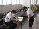 クイズ形式で、雑巾がけのやり方、箒の掃き方等を確認しました。4問ありましたが、全て3年生の生徒が答えていました。最後に美化委員長が無言清掃の意味を伝え、全員で今まで以上に岩舟中をきれいにしていきましょうと呼びかけました。