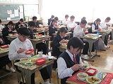 献立は、ごはん・牛乳・唐揚げ・ほうれん草のごま和え・ふわふわ卵とチーズのスープ・なしのジュレでした。生徒に人気の唐揚げでたんぱく質をとり、野菜と果物でビタミンをとって寒さに負けないようにと提案してくれました。