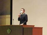 続いて表彰集会を行い、地区新人大会や音楽祭、文化活動での表彰を行いました。120名の生徒が表彰を受けましたが、代表で18名の生徒に表彰状やトロフィーを渡しました。コロナ禍のために活動が制限され、大会等も縮小されていますが、その中で多くの生徒が活躍してくれています。たいへん嬉しいことです。